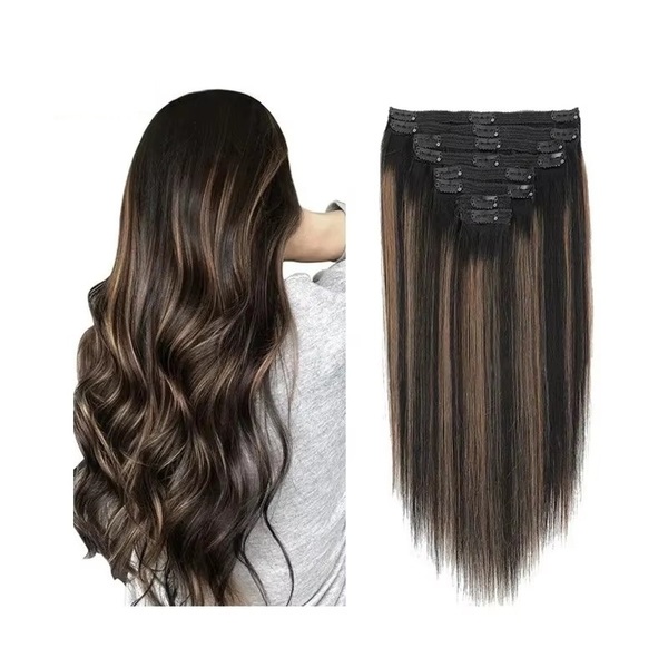 4Pcs Ladies Clip On Wig With Bangs
